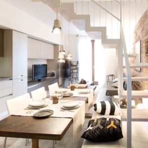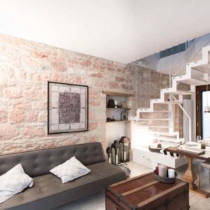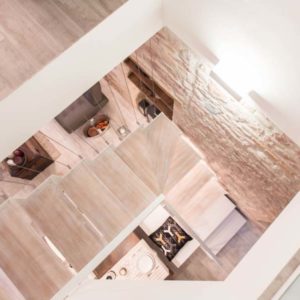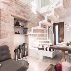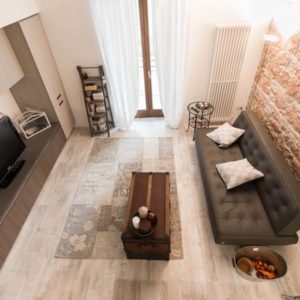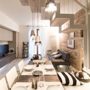 L’appartamento centralissimo si affaccia con 2 terrazzi sulla piazza di Santa Maria degli Angeli. L’edificio completamente ristrutturato risale ai primi del 900. L’atmosfera è calda ed accogliente con attenzione ai minimi dettagli e con pezzi d’antiquariato e manufatti unici. L’elemento ricorrente sono le Lanterne con candele profumate che donano un senso di pace. altro pezzo forte di design la scala bianca in ferro e legno che collega alla zona notte che dà un tocco di modernità e contrasto con la parete in tipica” pietra rosa di Assisi” che ci riporta invece al medioevo.